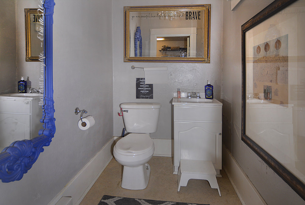 The building has 4 half baths, two on each level. The property, originally comprised of 2 separate buildings: one built in 1881 and the other built in 1935, has been combined into one structure.