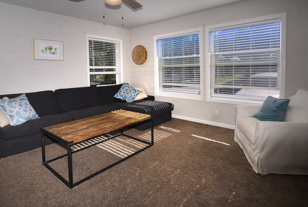 The fully equipped kitchen has brand new appliances and plenty of cabinet space to store your kitchen gadgets. Down the hallway are two nice sized bedrooms that share a full size bath.