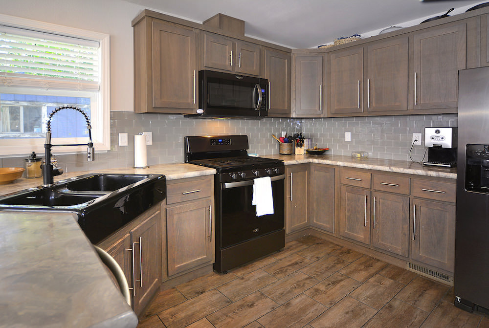 At the back of this home, is the primary bedroom with an ensuite bathroom. A full size washer and dryer compliment this updated mobile home.