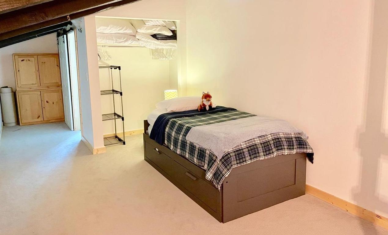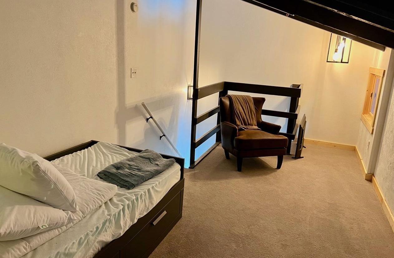 Upstairs, there's a spacious loft that can serve as a second bedroom, accommodating multiple beds, and it has its own bathroom. The location is remarkably tranquil and secluded.