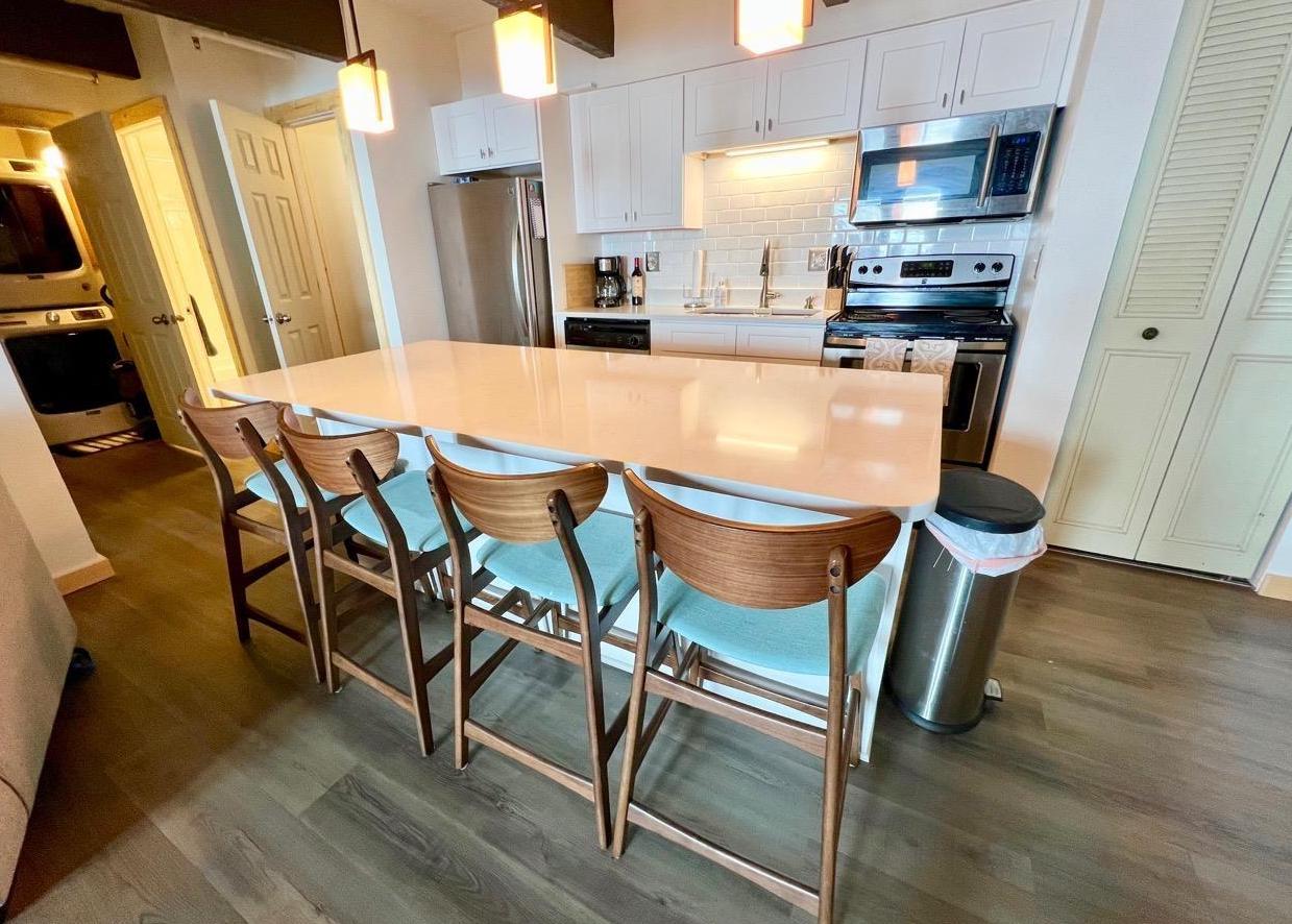 The exterior deck and railings have been recently renovated, and the condo comes fully furnished and equipped.
