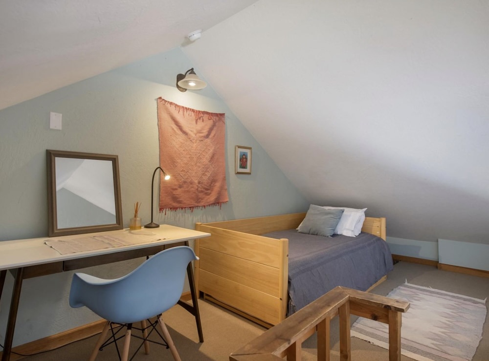 Ascend the custom built-in ladder to the loft level. This is a great flex space that could be used as an office, guest sleeping area, or even just extra storage
