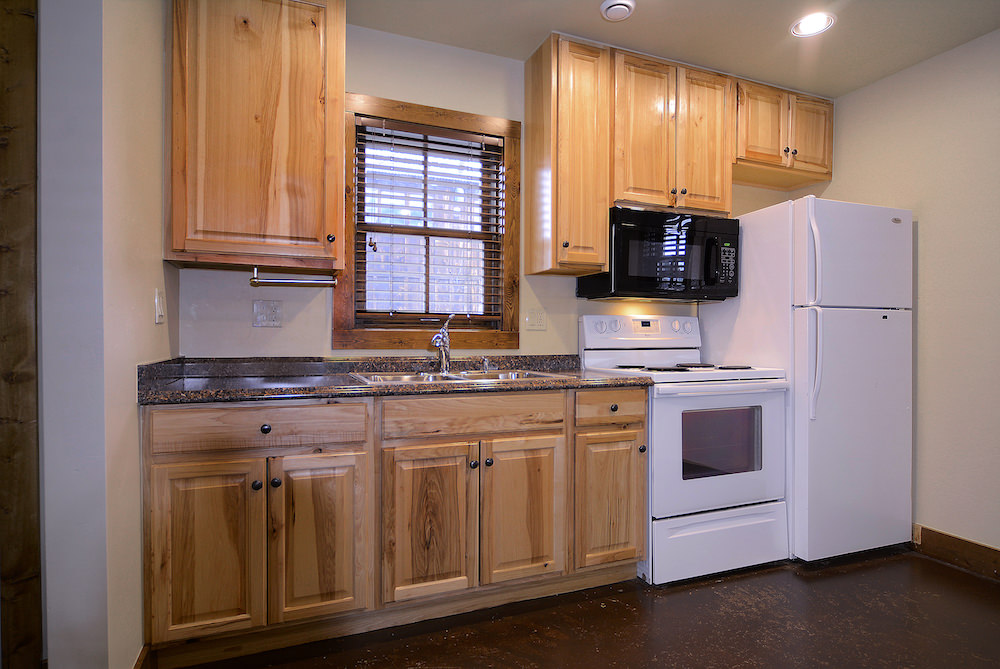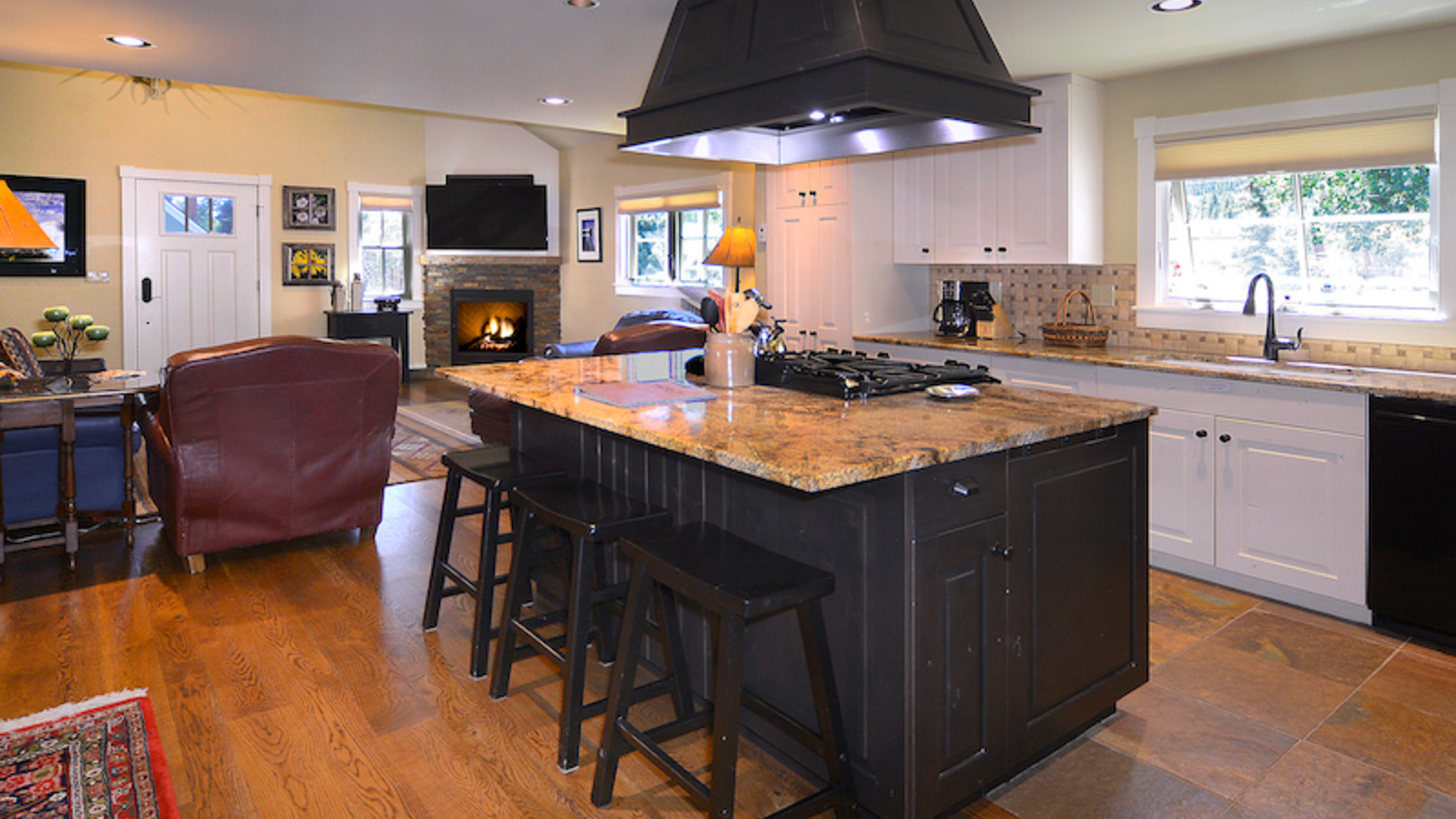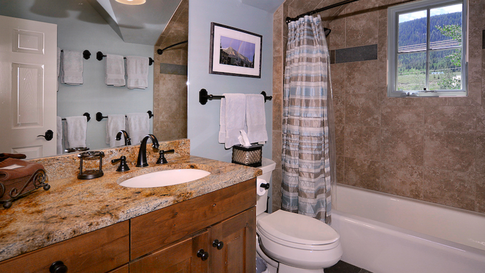 The open floor plan allows plenty of space for gathering with friends and family. The living room has a gas fireplace that will be perfect on winter nights after a day of skiing.