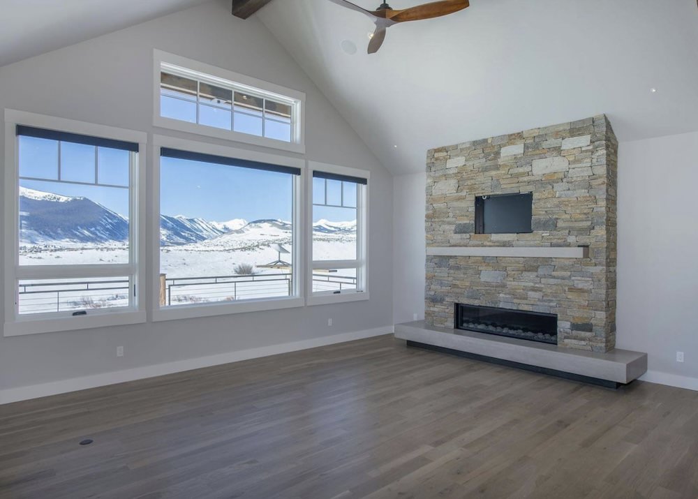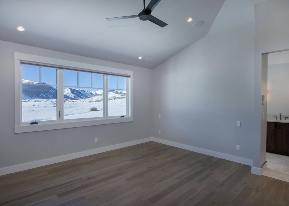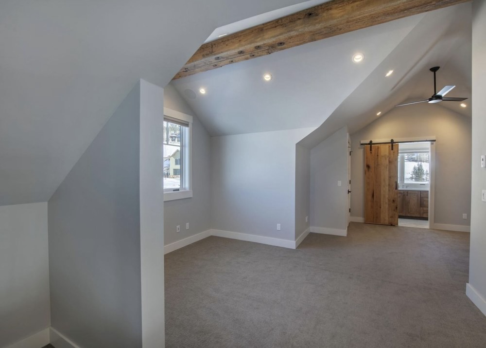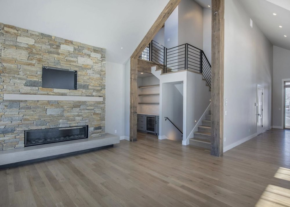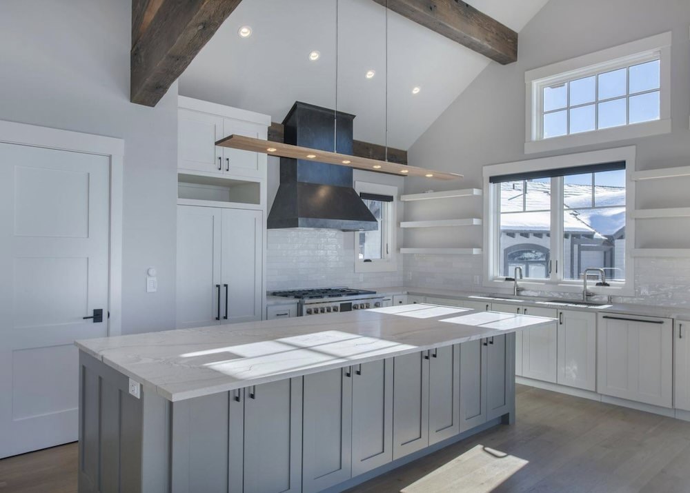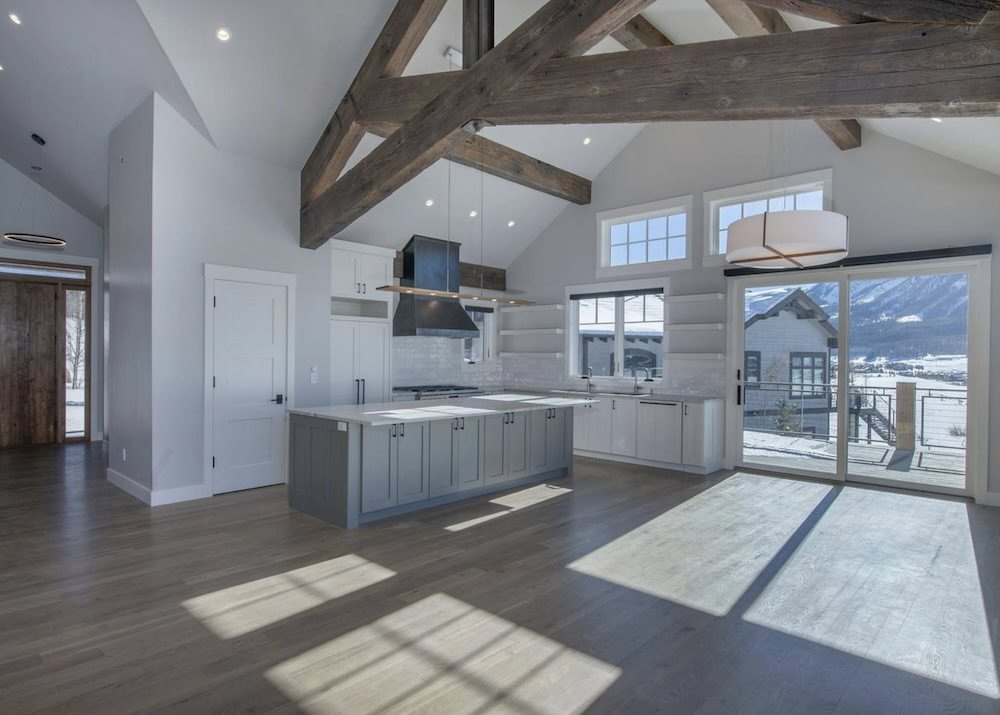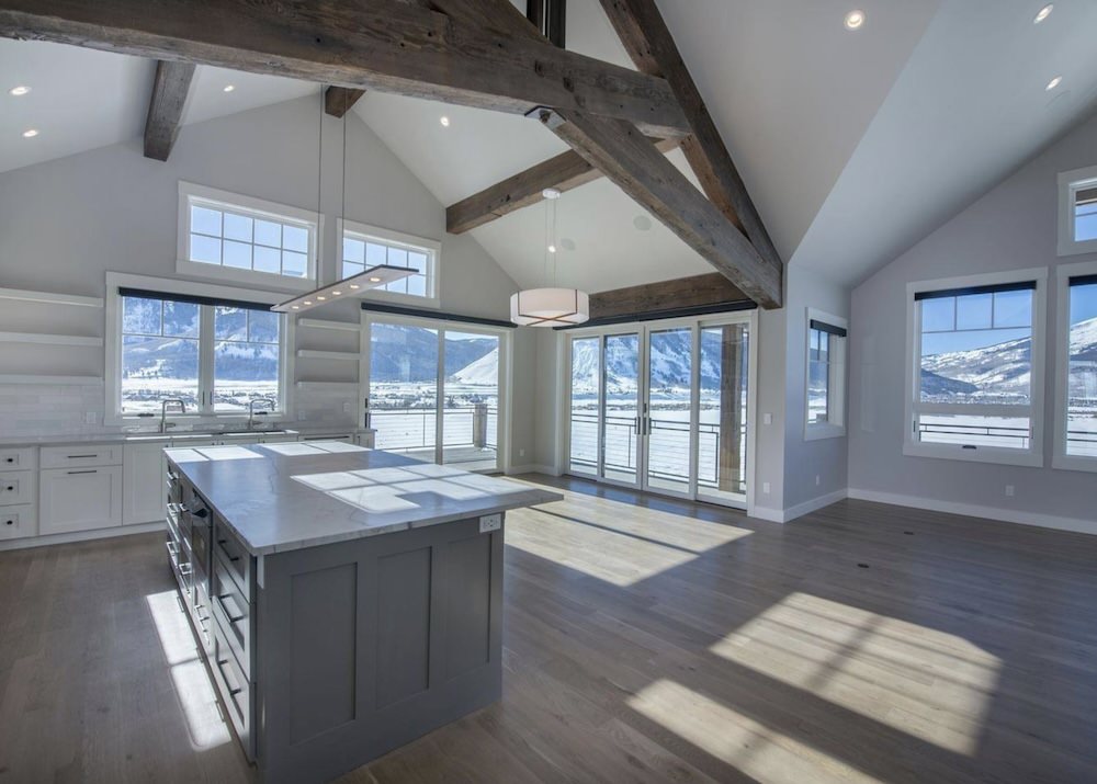 With a series of vaulted ceilings, massive picture windows framing the surrounding peaks, reclaimed wood trusses, the large open floor plan of the Great Room, Dining Room, and Kitchen welcome you and your guests to the picturesque outdoors.