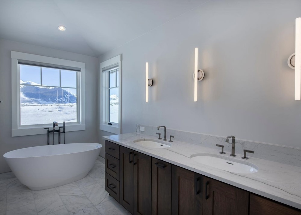 The home was meticulously designed to frame views of these mountains from all the spaces in this well thought out Mountain retreat. Featuring five bedrooms, five-and one-half bathrooms, this resort property is ideally suited for family, friends, entertaining, or as a retreat for business or philanthropic interests.